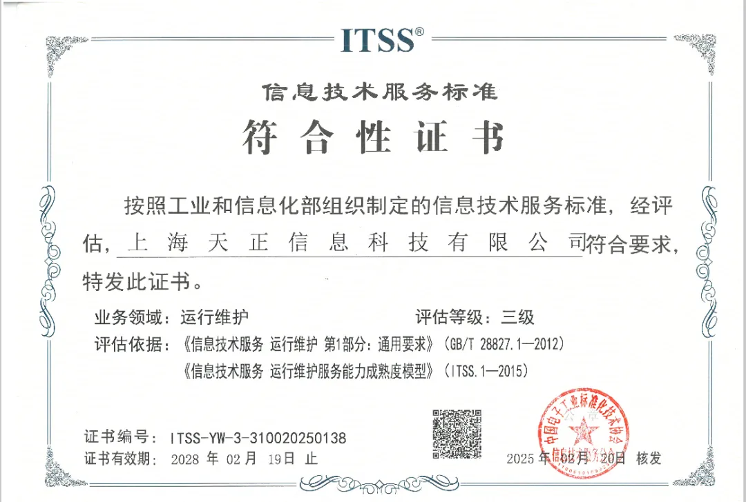 03-18◎喜報!熱烈慶祝天正信息成功通過ITSS三級認證,邁向服務新高度!